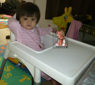 kalau letak dalam walker dia selalu mengamuk nak keluar. dah tu skang dah pandai keluar dari walker sendiri. tsk tsk tsk. memang tak bole biakan dalam walker tanpa pengawasan. memang sedaya upaya dia akan cuba keluar dari walker tu dan berjaya. kalau letak kat tilam, belum pun sempat omak e nak duduk kat kerusi meja makan tu, tup tup Arissa dah sampai dulu. merangkak dengan lajunya nak join jugak makan. so, kena la pangku sambil makan.